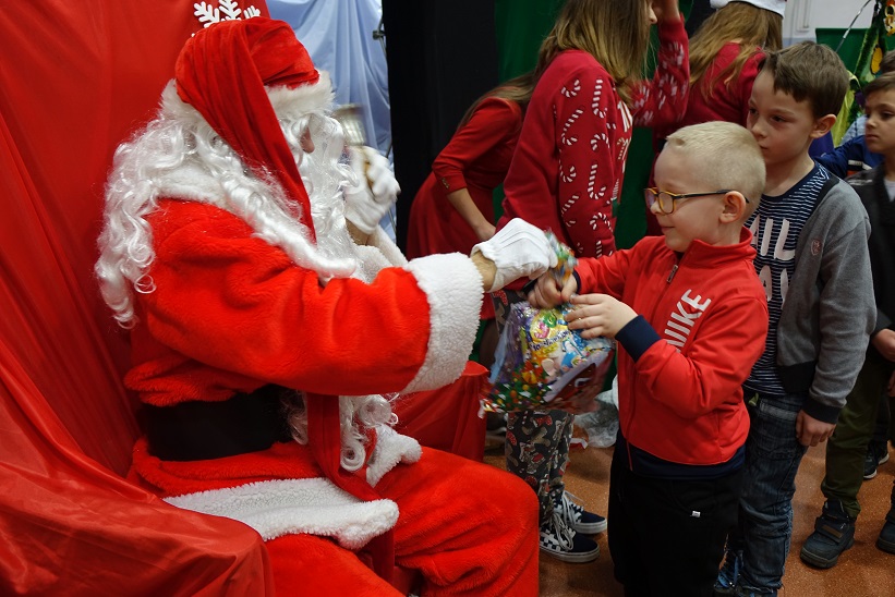 W niedzielę 10 grudnia 2017 r., jak co roku w sali gimnastycznej Zespołu Szkolno – Przedszkolnego w Radwanicach, odbyły się Mikołajki dla dzieci. Dzięki uprzejmości Firmy Przewozowej JOKER z Radwanic w spotkaniu mogły uczestniczyć dzieci ze wszystkich miejscowości należących do Gminy Radwanice. W tym roku dla wszystkich uczestników przygotowany był spektakl Teatru Rozrywki Trójkąt pt. „Jak Mikołaj urwał się z choinki”. Dzieciom bardzo podobało się to zabawne przedstawienie o dwóch elfach, którzy muszą odnaleźć św. Mikołaja. Najwięcej radości sprawiło dzieciom przybycie Św. Mikołaja, który przy pomocy wolontariuszy rozdał łącznie 400 paczek.