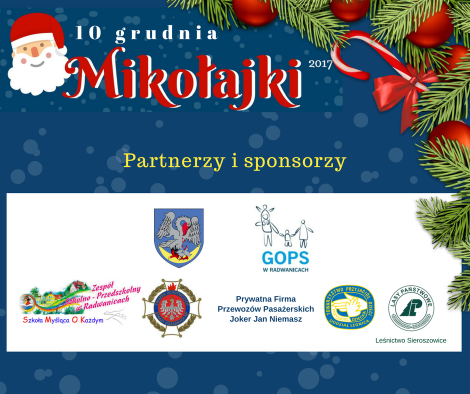 Organizatorami spotkania byli: Gmina Radwanice, Gminny Ośrodek Kultury w Radwanicach, Gminny Ośrodek Pomocy Społecznej. Jednakże Mikołajki nie odbyłyby się bez wsparcia i zaangażowania mieszkańców Gminy Radwanice, a w szczególności wolontariuszy i pracowników Zespołu Szkolno – Przedszkolnego w Radwanicach.