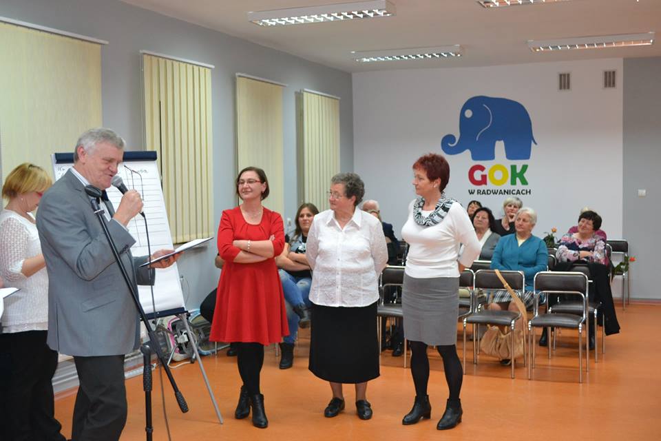 W ramach Gminnego Dnia Kobiet w dniu 10 marca br. w Gminnym Ośrodku Kultury w Radwanicach odbyło się spotkanie kobiet. Program spotkania był bogaty. Był kwiatek i buziak dla każdej z Pań od Wójta Gminy Radwanice pana Pawła Piwko oraz życzenia i toast. Przybyło ok. 70 pań, które dzielnie brały udział w konkursach i Quizie, poprowadzonych przez panów z Klubu Seniora OPTYMIŚCI. Po konkursach przyszedł czas na słodki poczęstunek i wykład dot. samoobrony , który poprowadził instruktor „Sztuk Walki” pan Tomasz Kuncik. Na zakończenie zagrał zespól POWERS, przy którym można było potańczyć. Spotkanie zorganizował Gminny Ośrodek Kultury i Rada Sołecka Radwanic. [JPG - 76 KB] [JPG - 74 KB] [JPG - 69 KB] [JPG - 69 KB] [JPG - 70 KB] [JPG - 85 KB] [JPG - 72 KB] [JPG - 68 KB] [JPG - 77 KB] [JPG - 92 KB] [JPG - 71 KB]