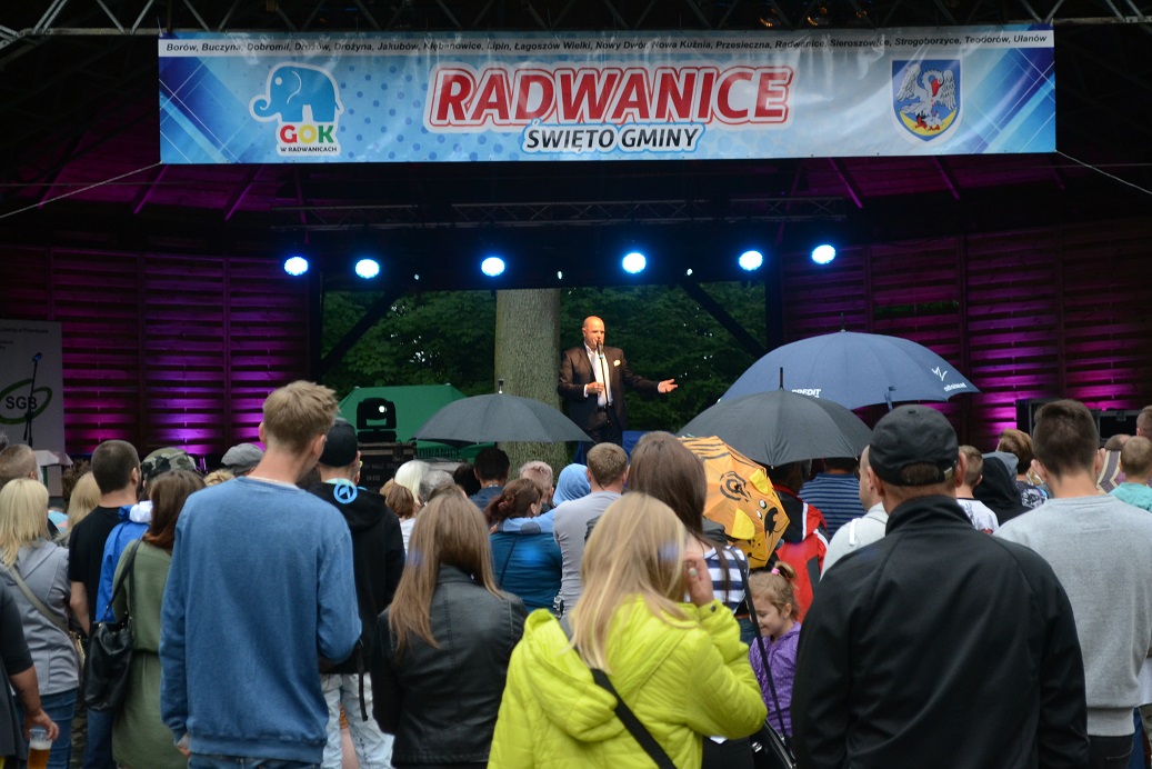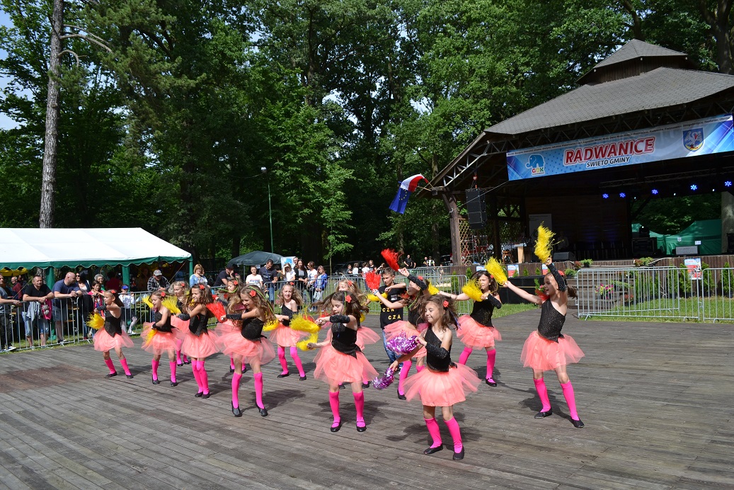 Punktualnie o 15.00 Wójt Gminy Radwanice, pan Paweł Piwko, powitał wszystkich widzów i oficjalnie otworzył Święto. Zaraz potem nadszedł czas by na scenie zaprezentowały się lokalne grupy artystyczne. Zespół Szkolno-Przedszkolny reprezentowało kilka zespołów: „Żabki”, „Smerfy”, „Gwiazdeczki”, Chór „Rybałci” oraz Zespół Tańca Nowoczesnego. „Buczacza” ze Szkoły Podstawowej w Buczynie popisała się swoim talentem tanecznym. Wiktoria Fraczek, Kamila Mazur i Aleksandra Stemplewska to młode wokalistki, uczennice i absolwentki Gimnazjum w Radwanicach. Zespół taneczno-wokalny „Frajda”, funkcjonujący przy GOKu, zaprezentował się w trzech układach tanecznych oraz piosence. Po występach dzieci i młodzieży, na scenie pojawiła się dojrzalsza grupa, ale młoda duchem i temperamentem, czyli Klub Seniora „Optymiści”. O 17.00 dzieci mogły wziąć udział w niezwykłym pokazie cyrkowym – żonglowanie, chodzenie na szczudłach to tylko niektóre elementy Eduardo Show. Cyrkowiec swoimi sztuczkami i dobrą zabawą zaczarował wszystkich! Następnie odrobinę „magii” organizatorzy zaserwowali dorosłym. Jurij Mokriszczew, znany artysta, zapraszał widzów do udziału w swoim programie „HipnoShow”. Wejście na scenę wymagało od ochotników sporo odwagi, bo zostali poddani trudnym próbom, np. chodzeniu po szkle czy hipnozie. Ten występ na pewno zostanie w pamięci publiczności na długo. Potężną dawkę dobrego humoru uczestnikom imprezy dostarczył jeden z najbardziej znanych i lubianych artystów w Polsce, aktor charakterystyczny, kabareciarz, czyli CEZARY ŻAK. Wybuchające co chwilę salwy śmiechu to najlepsza recenzja programu. Pan Cezary po występie spotkał się z fanami, więc każdy mógł uzyskać autograf i wspólne zdjęcie z aktorem. Niekwestionowaną gwiazdą wieczoru był zespół Piękni i Młodzi, który przyciągnął do Parku prawdziwe tłumy. Podczas koncertu wielbiciele disco polo usłyszeli największe hity grupy, takie jak „Ona jest taka cudowna” czy „Kocham się w Tobie”. Piękni i Młodzi zrobili prawdziwe show na scenie! Po koncercie publiczność pozostała w tanecznym nastroju. Znany i lubiany DJ RAFF dostarczył potężną dawkę hitów, przy której widzowie bawili się do późnej nocy. Przez cały dzień można było odwiedzać ciekawe i piękne stoiska, przygotowane przez: Urząd Gminy Radwanice, Związek Gmin Zagłębia Miedziowego, sołectwo Radwanice, sołectwo Przesieczna, sołectwo Sieroszowice, sołectwo Nowy Dwór, Koło Wędkarskie oraz Przemkowski Park Krajobrazowy z Przemkowa oraz Wzgórza Dalkowskie. Dodatkowo, dzieci przez kilka godzin mogły wziąć udział w warsztatach cyrkowych, robić gigantyczne bańki mydlane czy pomalować sobie buźkę. Dużą popularnością cieszyła się też Kawiarenka przygotowana przez Klub Seniora „Optymiści” W ramach Święta Gminy Radwanice odbył się Turniej piłki nożnej o puchar Wójta, który trafił do drużyny z Ostaszowa. Wójt wręczył również nagrody w Towarzyskiej lidze tenisa ziemnego. Najlepszym zawodnikiem okazał się Sławomir Bartnicki. Organizatorem Święta Gminy Radwanice był Gminny Ośrodek Kultury, natomiast sponsorami: Gmina Radwanice, Związek Gmin Zagłębia Miedziowego, Gaz System oraz Bank Spółdzielczy w Przemkowie. Wydarzenie nie mogłoby się odbyć bez wsparcia partnerów wydarzenia, a byli nimi: Klub Seniora „Optymiści”, Jednostka OSP – Łagoszów Wielki, Szkółka Drzew i Krzewów w Radwanicach, Park Krajobrazowy i Klub Wędkarski Przemków, Sołectwa należące do Gminy Radwanice, szkoły z terenu Gminy, Biblioteka Publiczna w Radwanicach.
